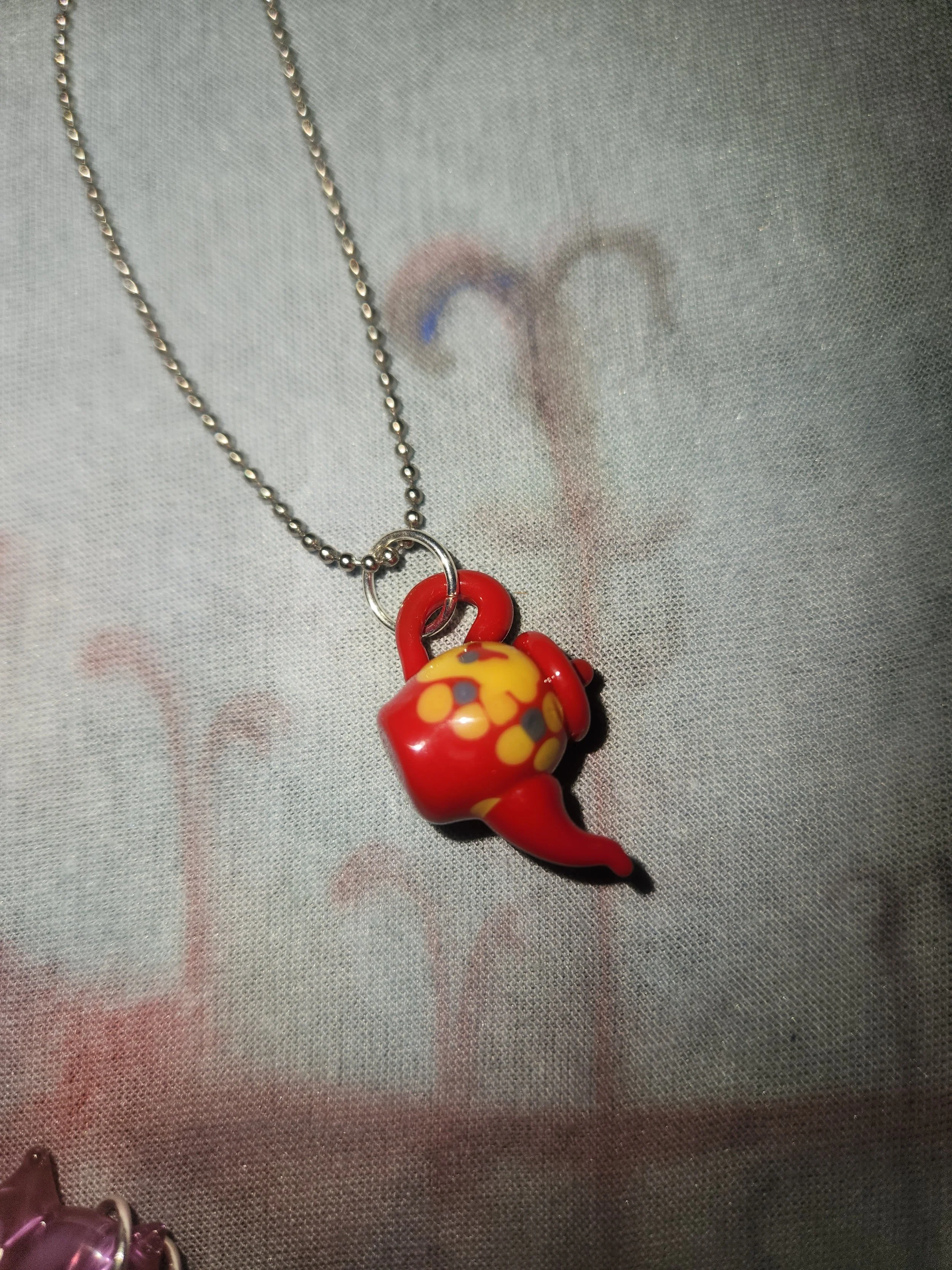 Aptegwai Handmade Shop › Red Teapot Charm Red Teapot Charm $25.00 small red tea pot, the size of an american quarter adorned with flower designs small red tea pot, the size of an american quarter adorned with flower designs Add To Cart Added!